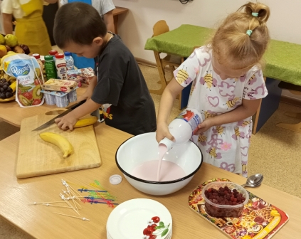 Многие мальчики и девочки крутятся на кухне, стараясь помочь родителям в приготовлении блюд. Именно для таких любознательный ребят прошел кулинарный день во второй младшей группе. Ребята готовили фруктовые канапе,коклели. Все получилось очень вкусно и полезно. Ребята получили огромное удовольствие и массу впечатлений.