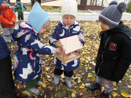 Зимой ежегодно гибнет огромное количество птиц от нехватки корма. Поэтому 12 ноября, в «Синичкин день» на территории всей России проводится природоохранная акция по изготовлению кормушек для встречи зимующих птиц. Ребята второй младшей группы приняли участие, и сегодня в «Синичкин день» на участке нашего детского сада открылись птичьи столовые, и появились новые кормушки которые изготовили родители. А так же с ребятами проводились беседы о зимующих птицах, о роли человека в жизни зимующих птиц. Этот день прошел в дружеской обстановке и оставила много ярких впечатлений у детей и родителей.